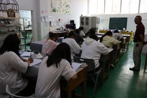 由教務(wù)處和實(shí)訓(xùn)中心聯(lián)合舉辦的貴州省貴陽(yáng)市商貿(mào)學(xué)校2022—2023年第一學(xué)期通識(shí)課技能大賽(書法比賽)項(xiàng)目在石藝工坊舉行。