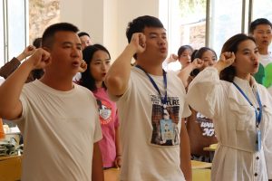 隨后,全校教師由現(xiàn)代服務系主任趙雪帶領,舉起右手莊嚴宣誓,“我是一名光榮的人民教師,我將牢記黨的教育方針,不忘立德樹人初心,牢記為黨育人、為國育才使命,踐行社會主義核心價值觀,嚴格遵守《教師職業(yè)道德規(guī)范》……為人民教育事業(yè)和實現(xiàn)中華民族偉大復興的中國夢而不懈奮斗”。