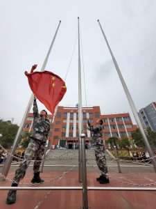 儀式在莊嚴(yán)的國(guó)歌聲中拉開(kāi)帷幕,升國(guó)旗、奏唱國(guó)歌,五星紅旗在全體師生的矚目中冉冉升起,迎風(fēng)飄揚(yáng),鮮艷的紅色澄澈著每個(gè)人的心靈。
